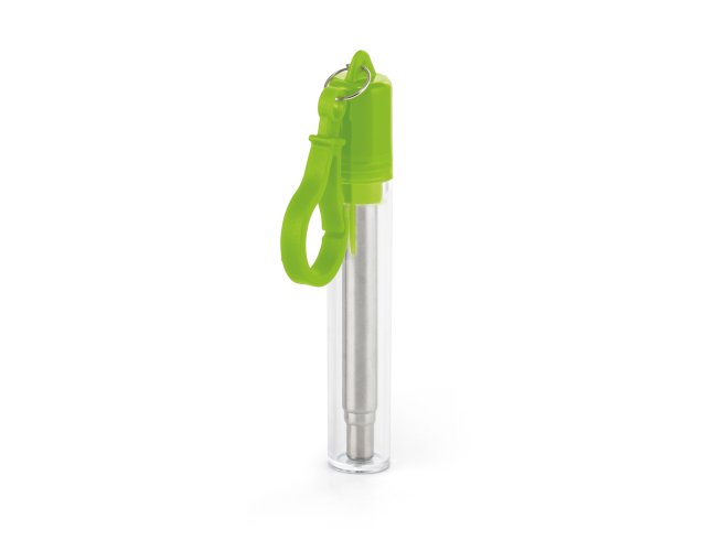 Conjunto de canudo. Aço inoxidável. 1 canudo telescópico, 1 escova de limpeza e estojo com mosquestão. Food grade. Canudo: ø9 x 218 mm