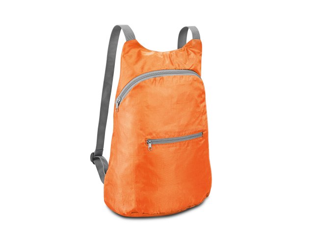 Mochila dobrável. 210D ripstop. Com bolso frontal. Fornecida desdobrada