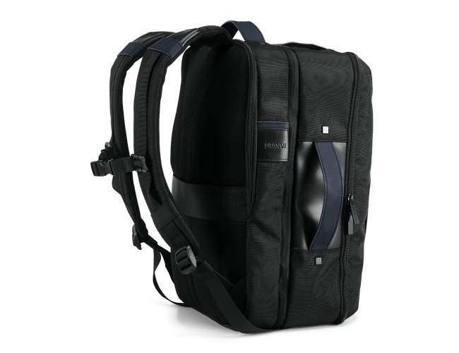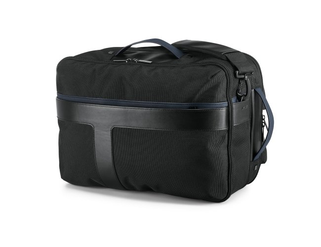 Mochila. Polipele 1680D. Com duas funcionalidades distintas: saco de viagem e mochila. Mochila com compartimento principal com duas divisórias forradas e almofadadas para notebook até 15.6 e tablet até 10.5. Bolso antirroubo. Bolso frontal. Alça para trolley. Fornecida em sacola de non-woven. 300 x 420 x 200 mm