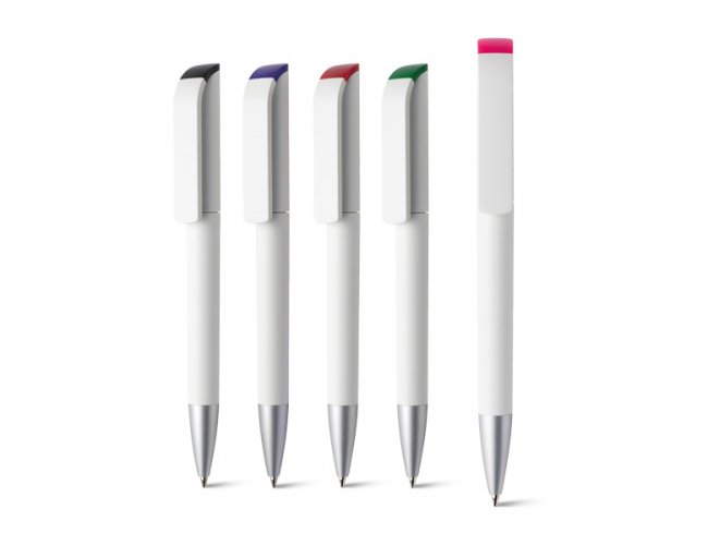 Esferográfica em alumínio com clipe. Disponível numa variada gama de cores. Escrita em azul.